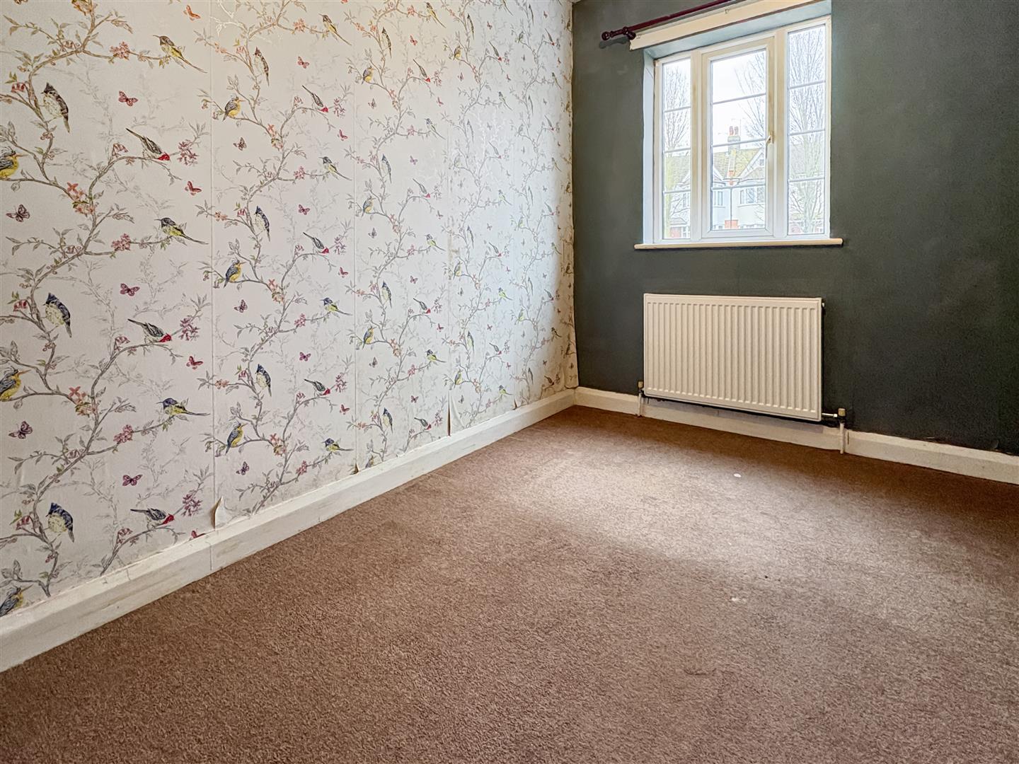 Double glazed window to front, carpeted, wall papered walls, radiator: